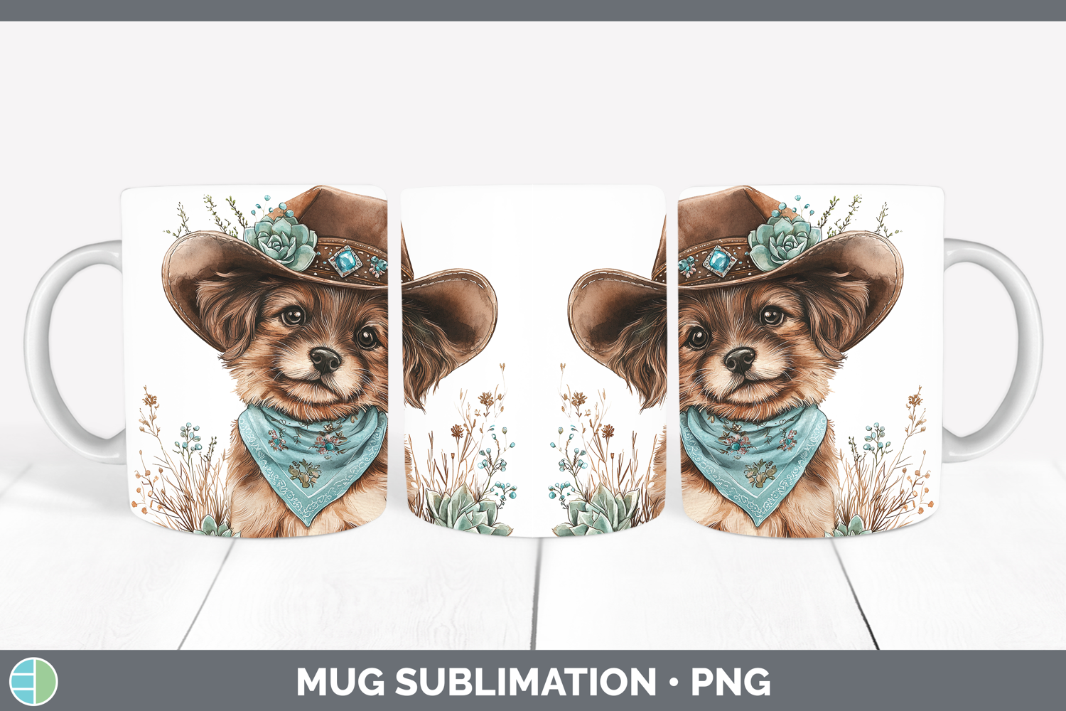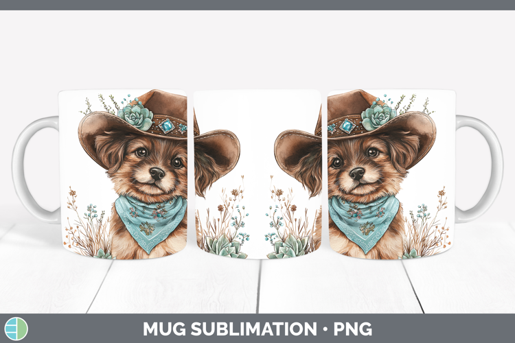 Country Western Puppy Mug Wrap Sublimation Coffee Cup Design example image 1