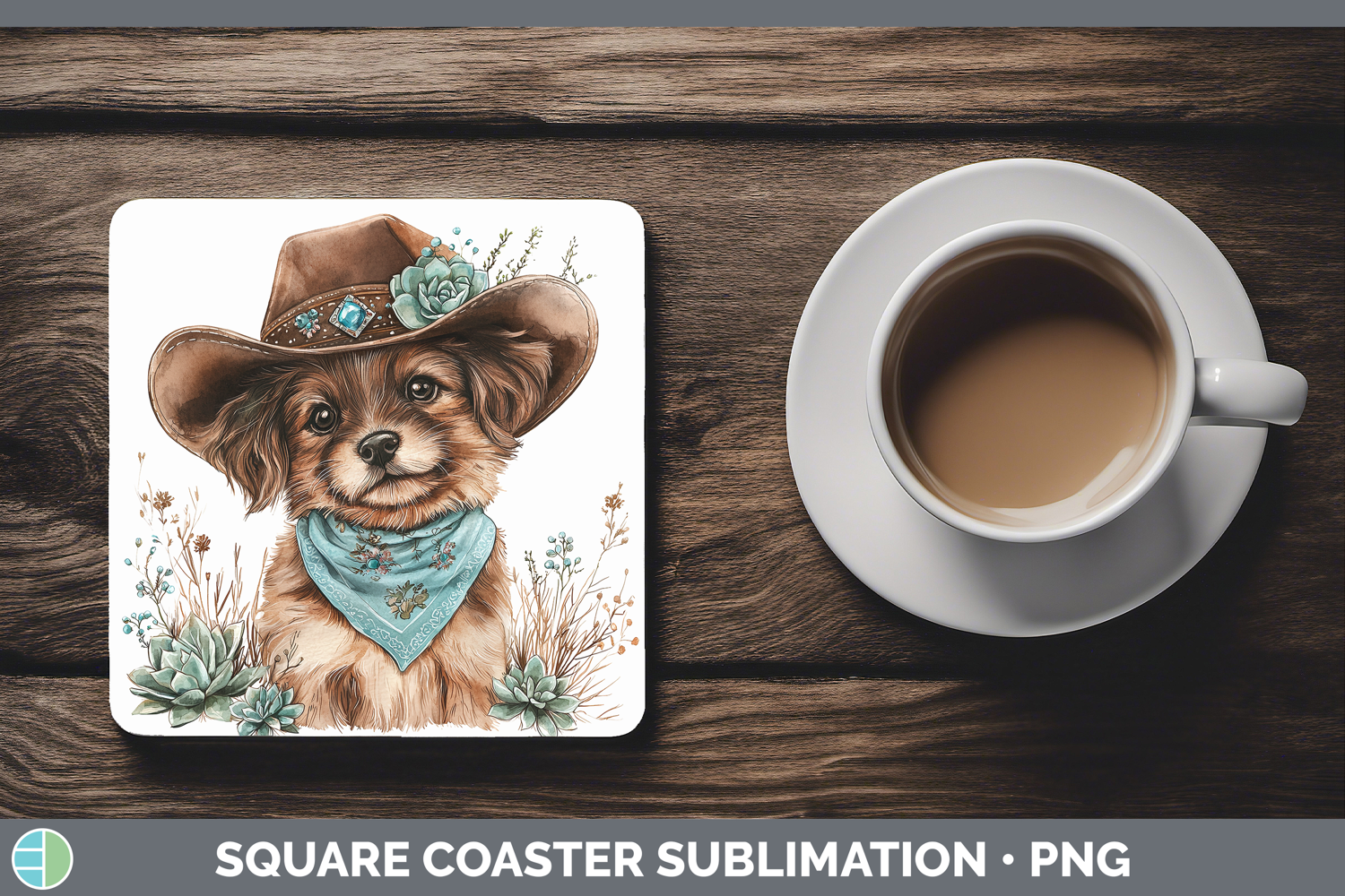 Country Western Puppy Square Coaster Sublimation Coaster Des