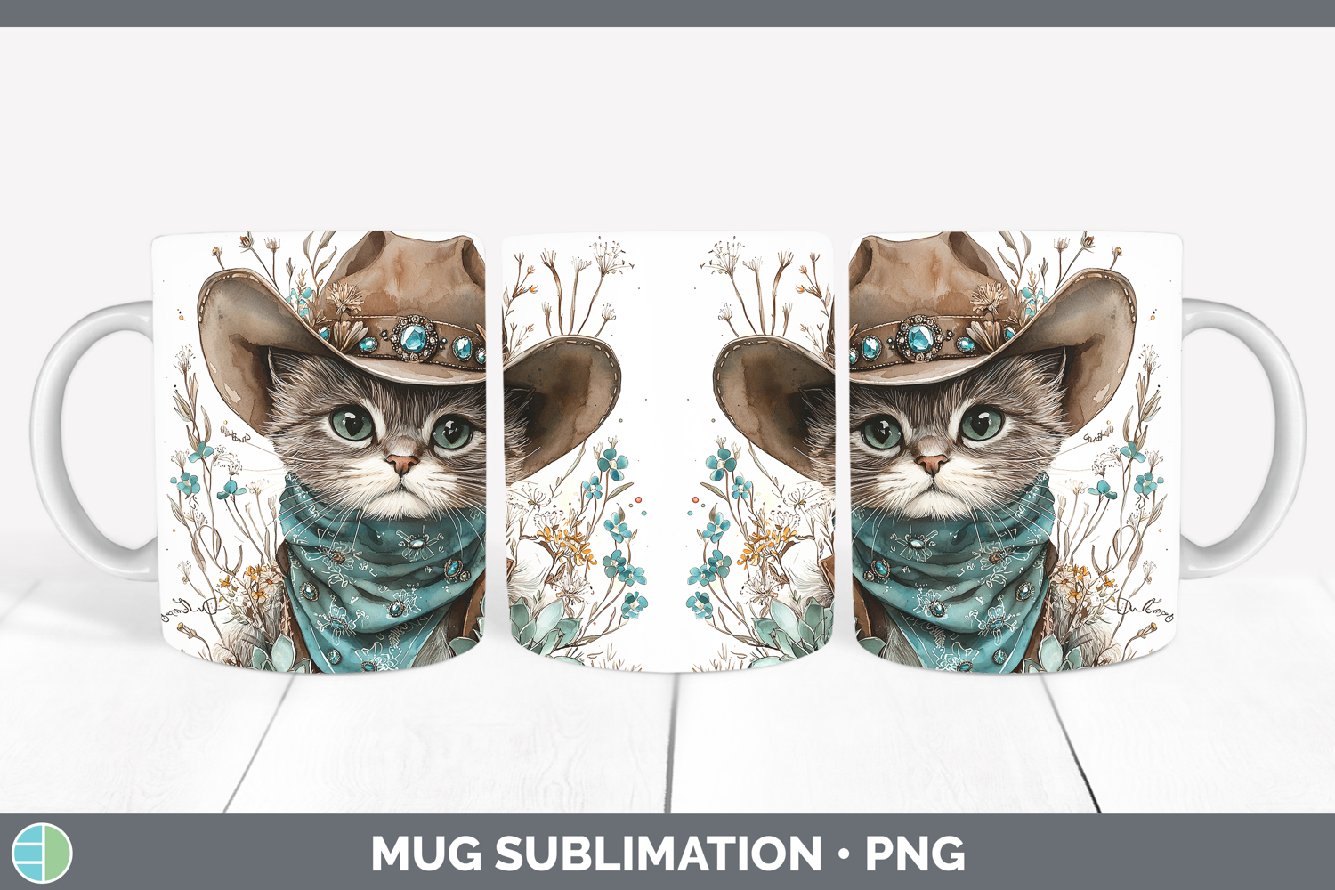 Country Western Kitten Mug Wrap Sublimation Coffee Cup Desig