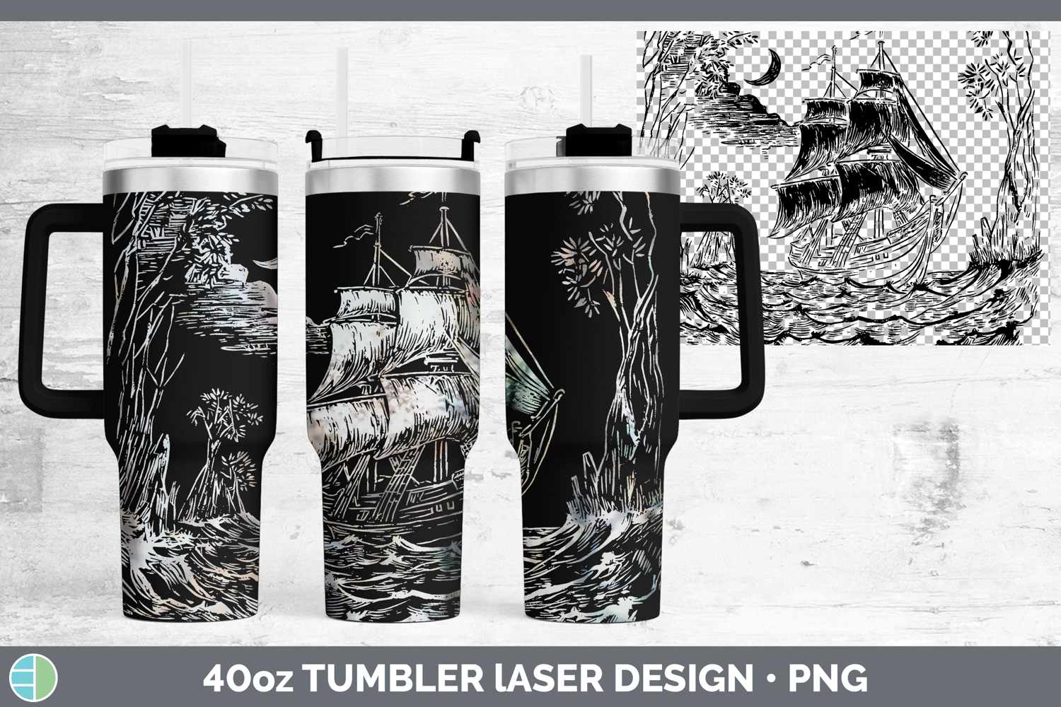 Etch Pirate Ship Laser 40oz Tumbler Sublimation Tumbler Desi