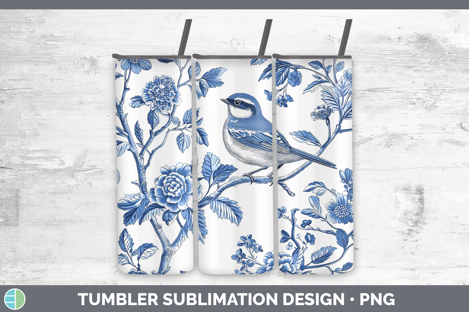 Blue Chinoiserie Birds Wren Tumbler Sublimation 20 oz Skinny