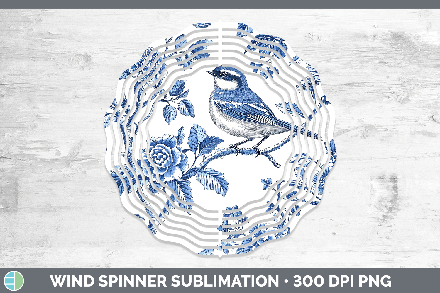 Blue Chinoiserie Birds Wren Wind Spinner Sublimation Spinner
