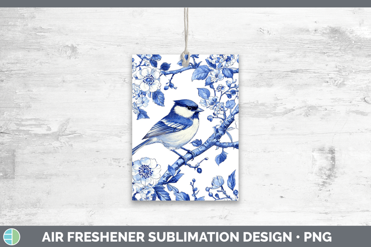 Blue Chinoiserie Birds Chickadee Air Freshener Sublimation C