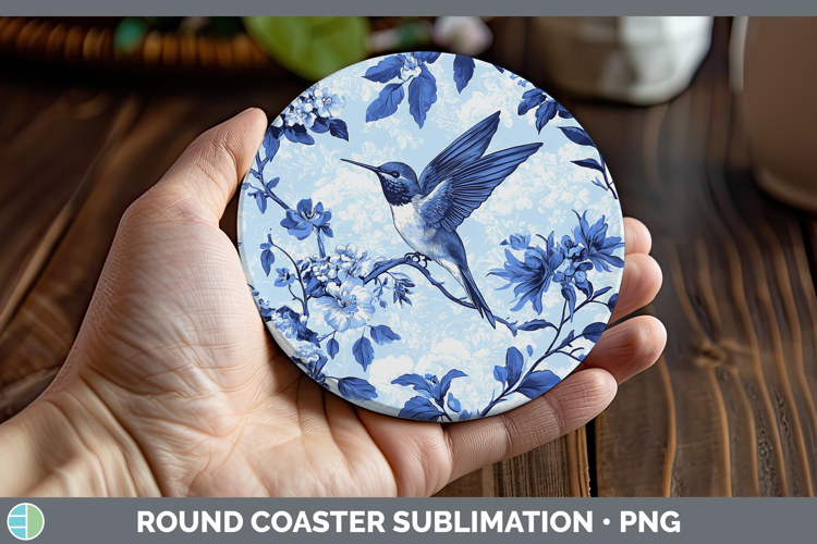 Blue Chinoiserie Birds Hummingbird Round Coaster Sublimation