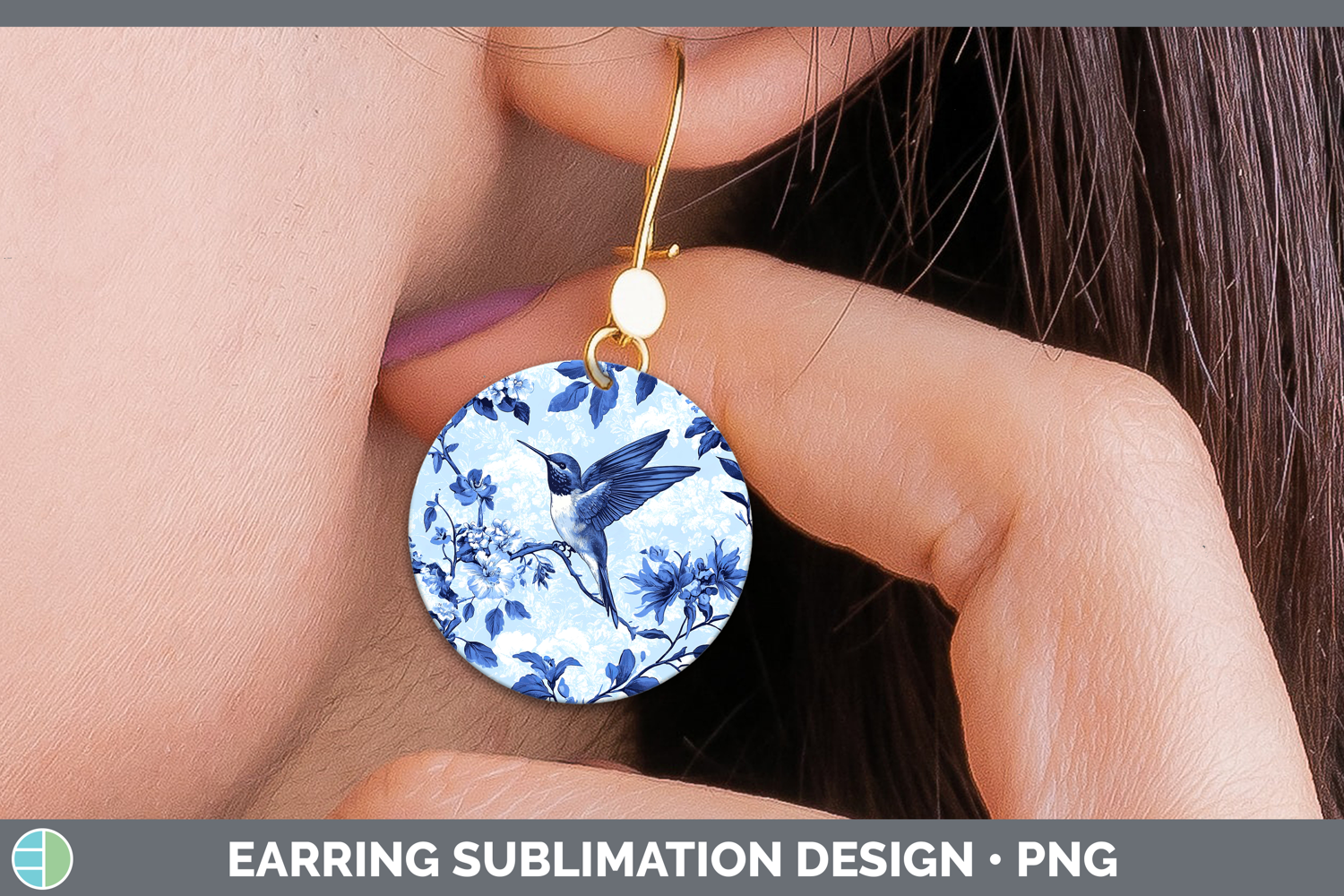 Similar Design Products to Blue Chinoiserie Birds Hummingbird Round Earrings Sublimatio