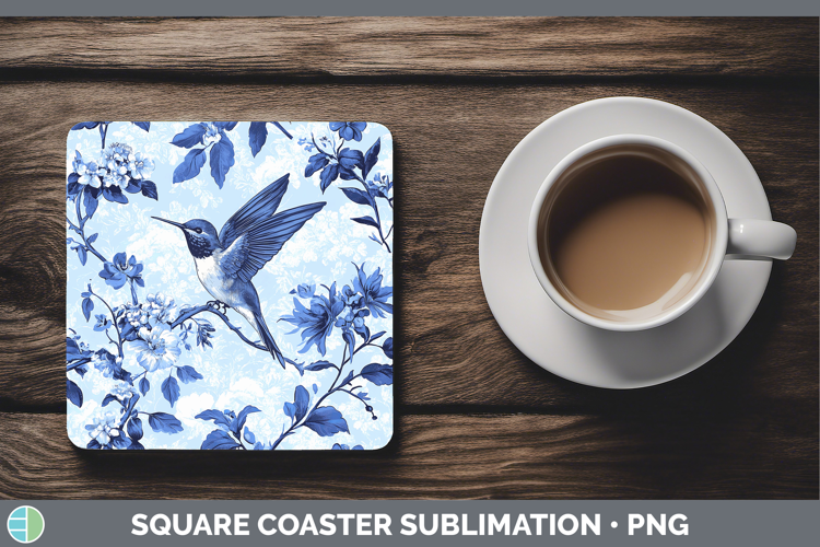 Blue Chinoiserie Birds Hummingbird Square Coaster Sublimatio