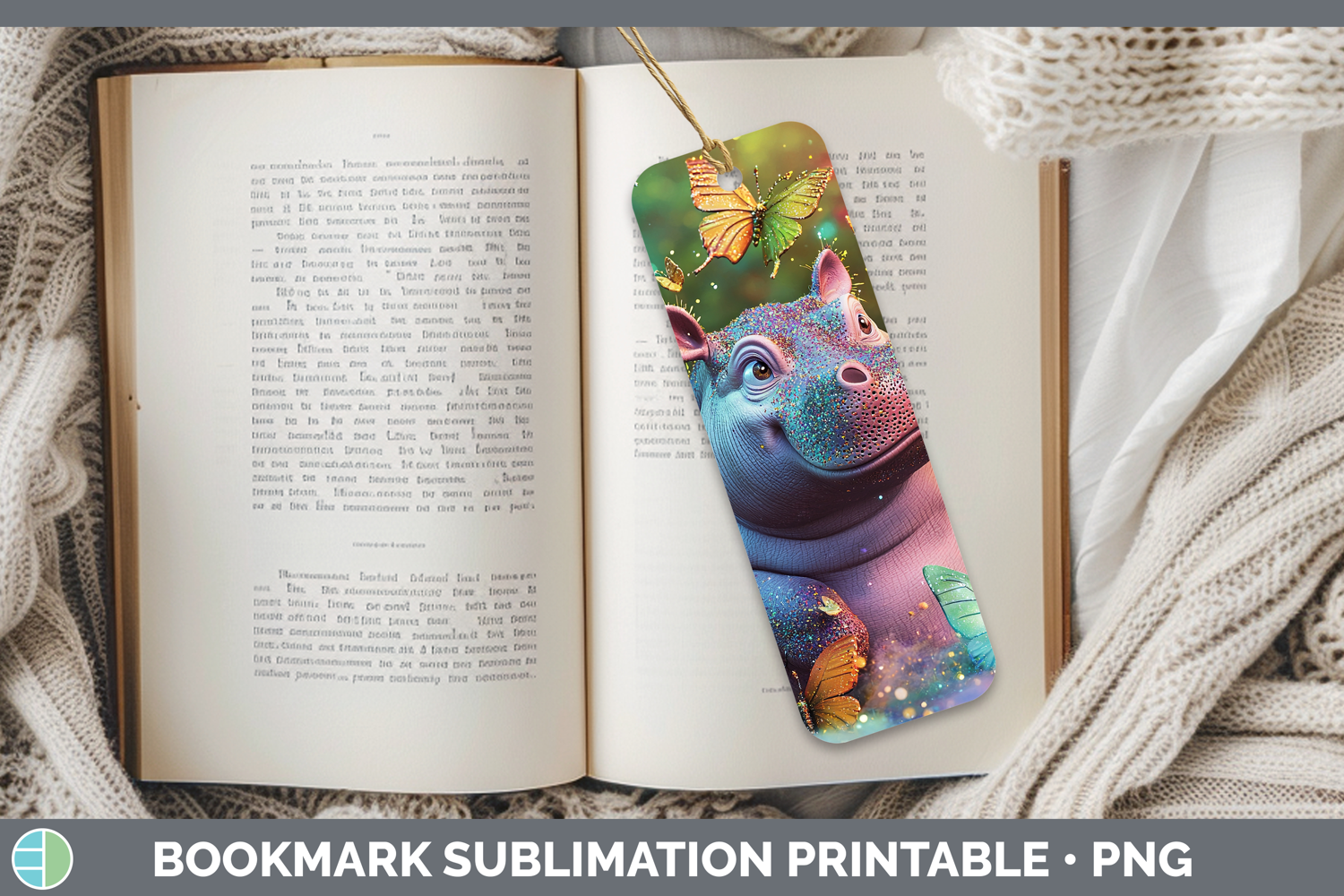 Safari Glitter Hippo Bookmark Sublimation Printable Designs