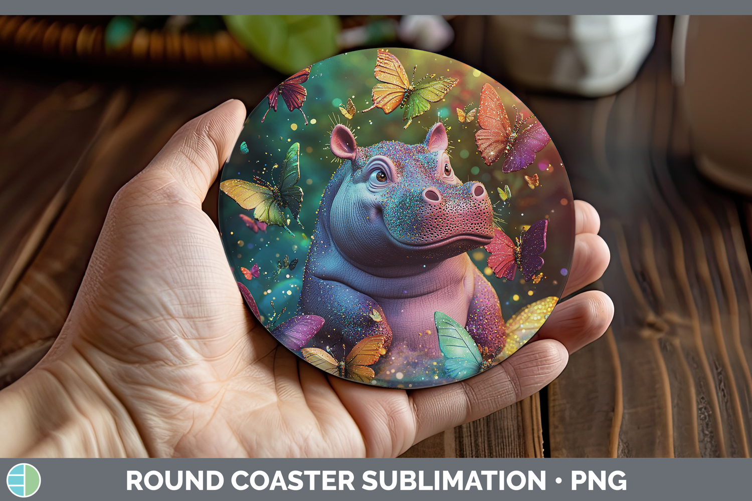 Safari Glitter Hippo Round Coaster Sublimation Coaster Desig