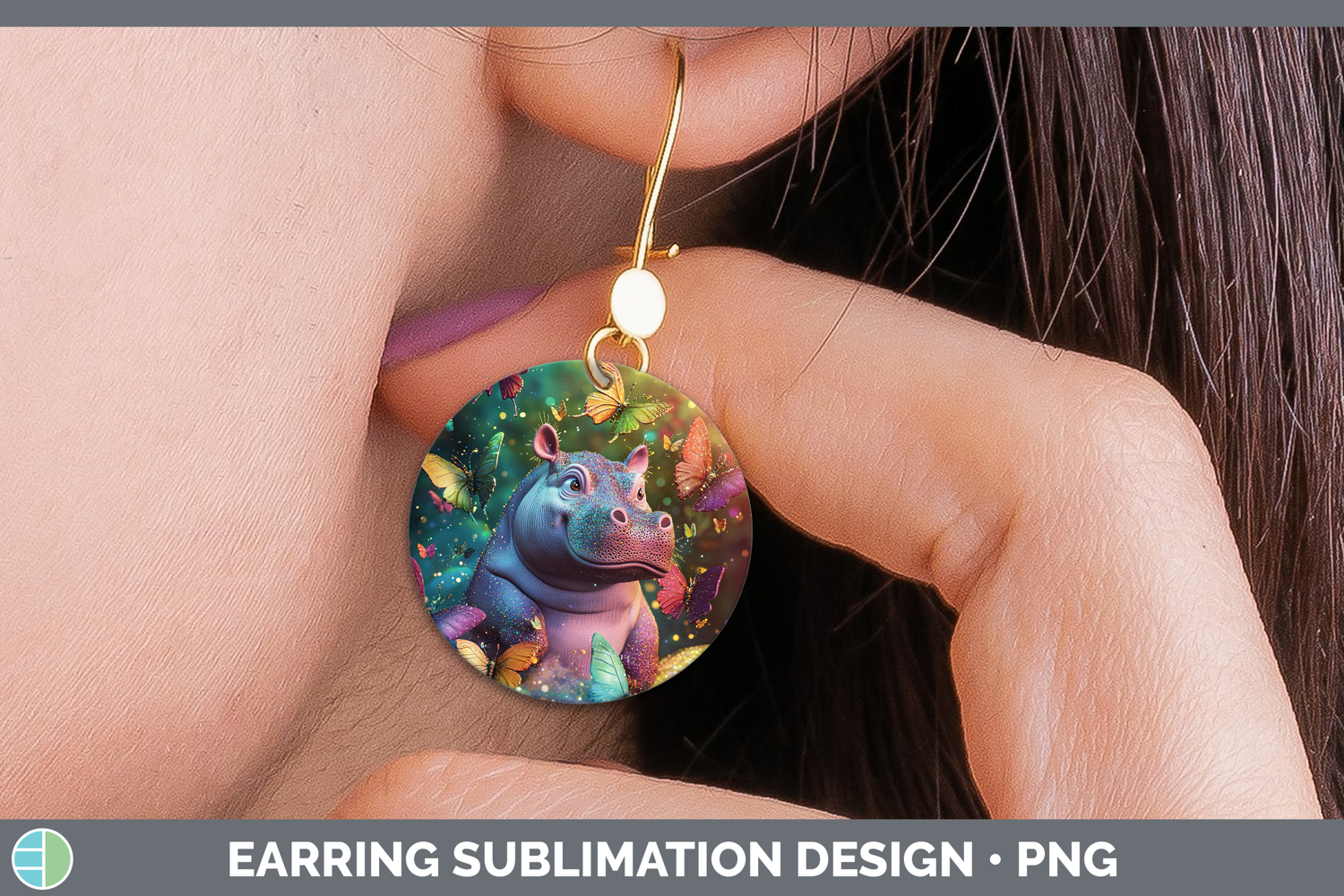Safari Glitter Hippo Round Earrings Sublimation Earrings Des