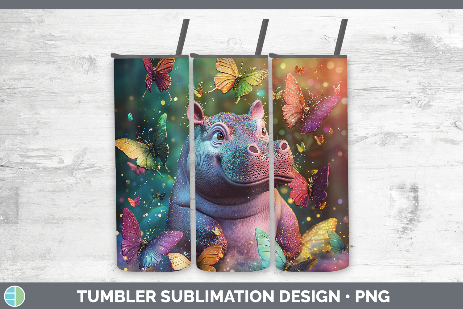 Similar Design Products to Safari Glitter Hippo Tumbler Sublimation 20 oz Skinny Tumble