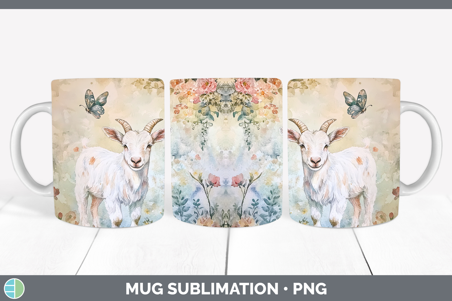 Farm Butterflies Goat Mug Wrap Sublimation Coffee Cup Design