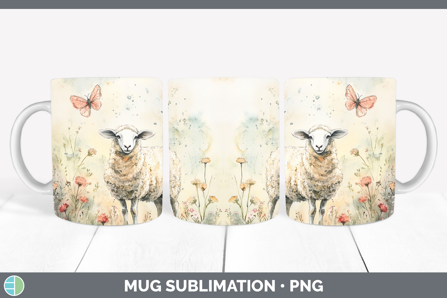 Farm Butterflies Sheep Mug Wrap Sublimation Coffee Cup Desig