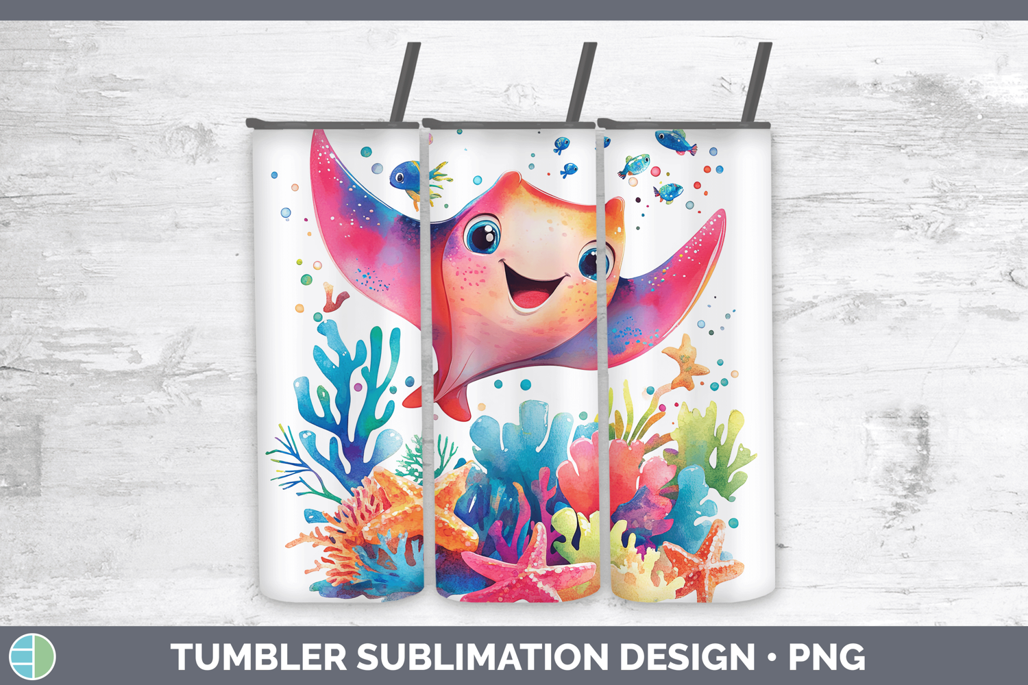 Sea Adorable Manta Ray Tumbler Sublimation 20 oz Skinny Tumb