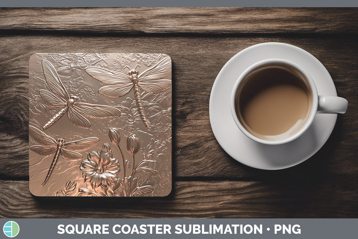 BS01 Copper Relief Dragonfly Square Coaster Sublimation Coas