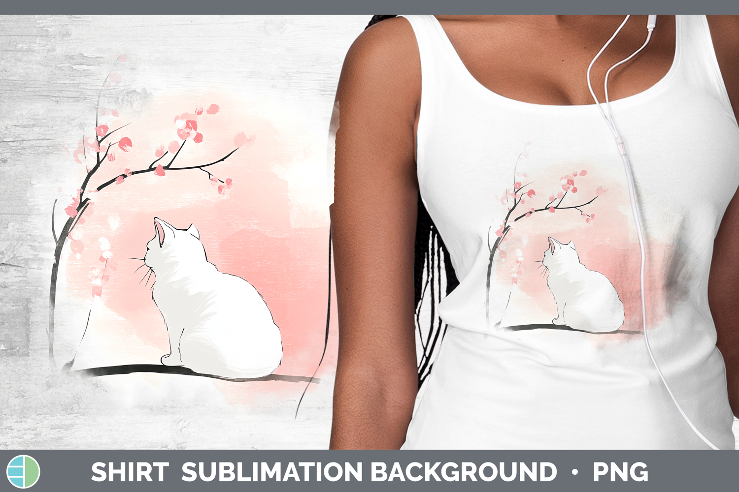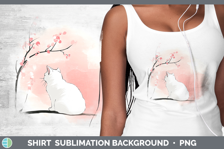 BS03 Sakura White Cat Shirt Sublimation Sublimation Backgrou