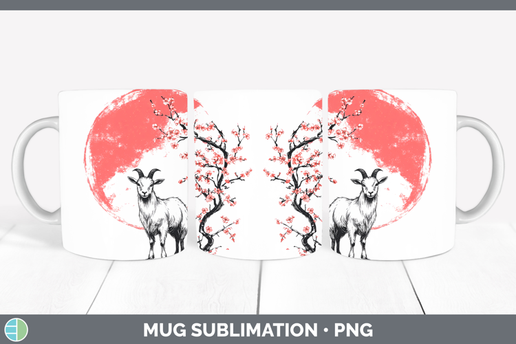 BS03 Sakura Goat Mug Wrap Sublimation Coffee Cup Designs
