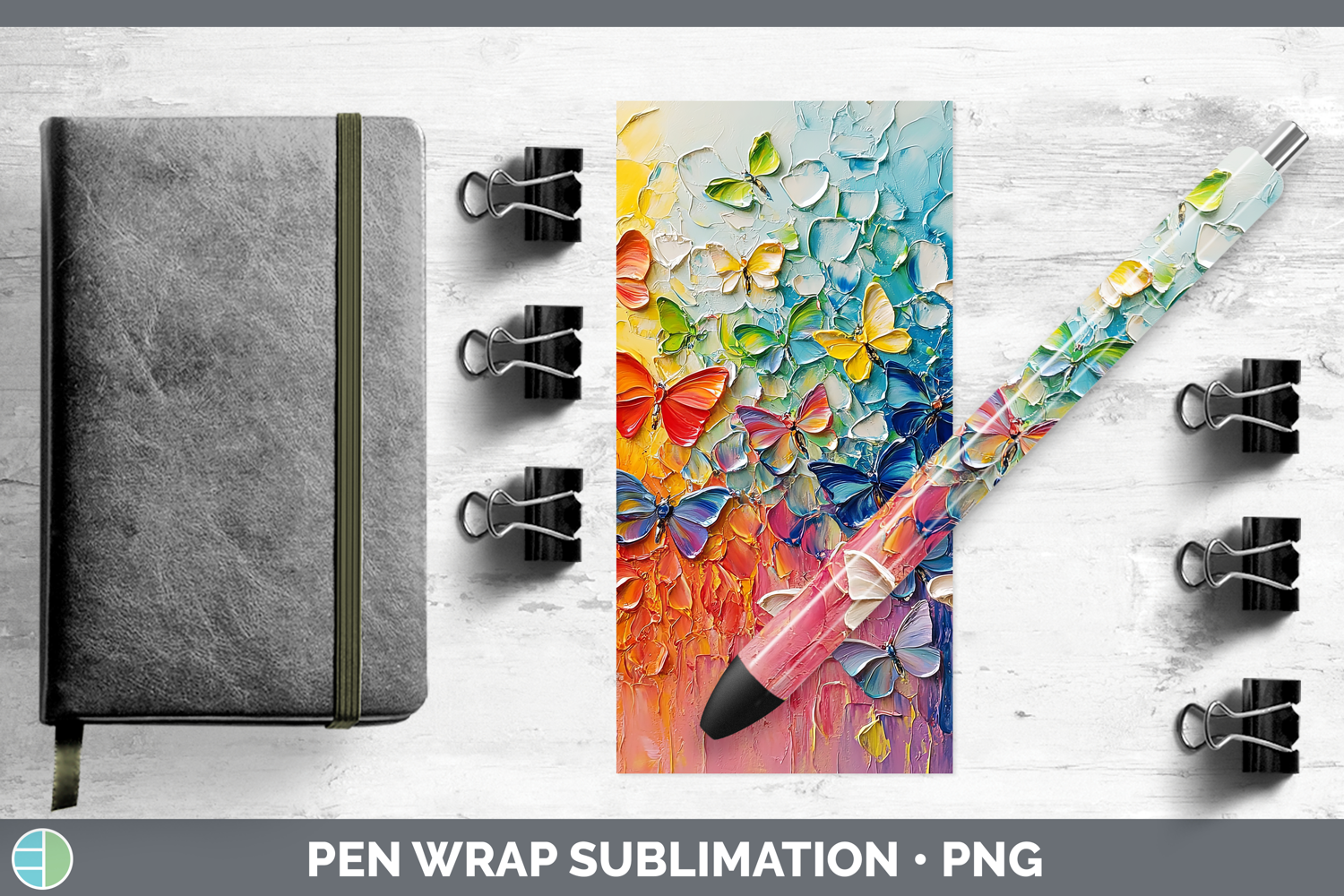 BS01 Thick Paint Butterfly Pen Wrap Sublimation Pen Designs