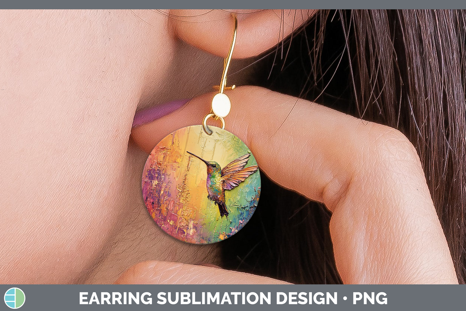 BS01 Thick Paint Hummingbird Round Earrings Sublimation Earr