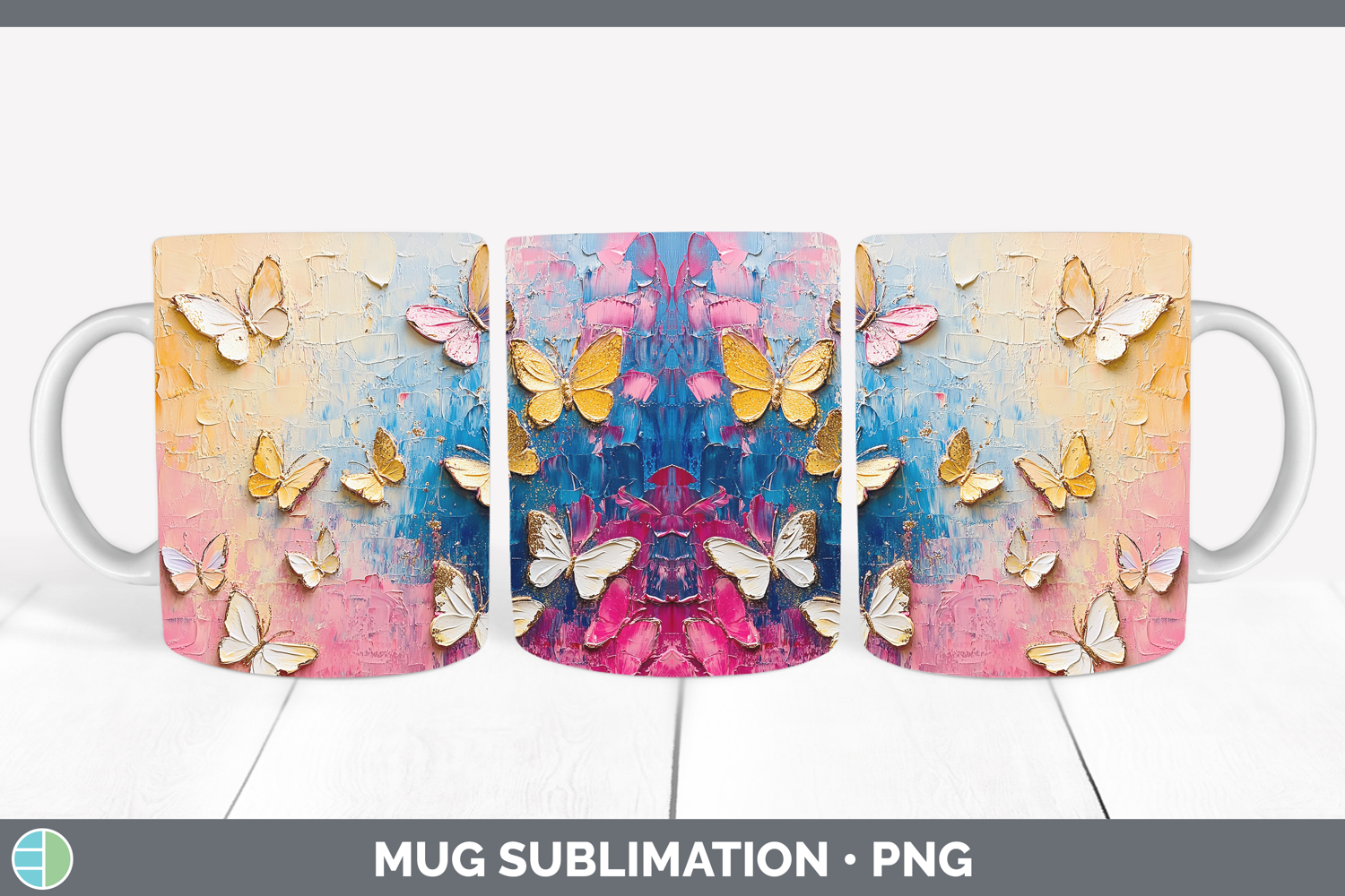 Kids 01 Thick Paint Butterflies Mug Wrap Sublimation Coffee