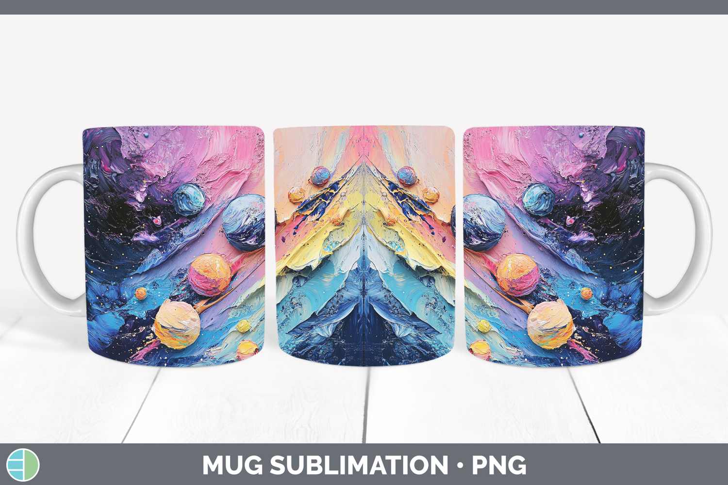 Kids 02 Thick Paint Planets Mug Wrap Sublimation Coffee Cup