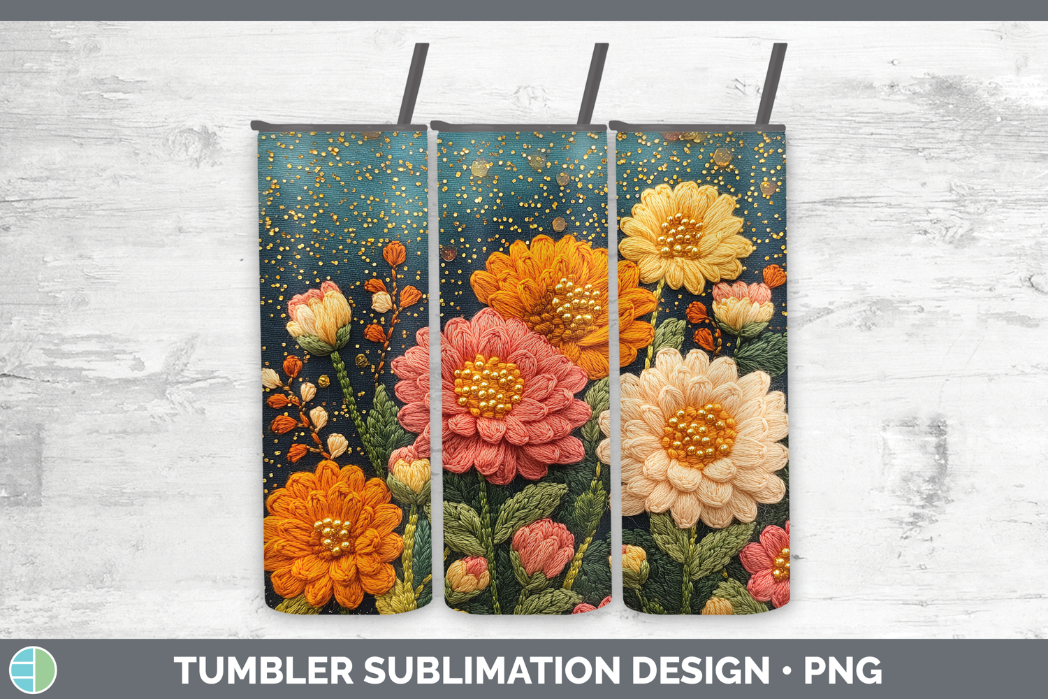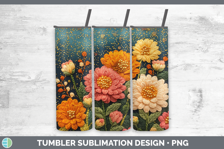 Flowers 01 Embroider Chrysanthemum Tumbler Sublimation 20 oz