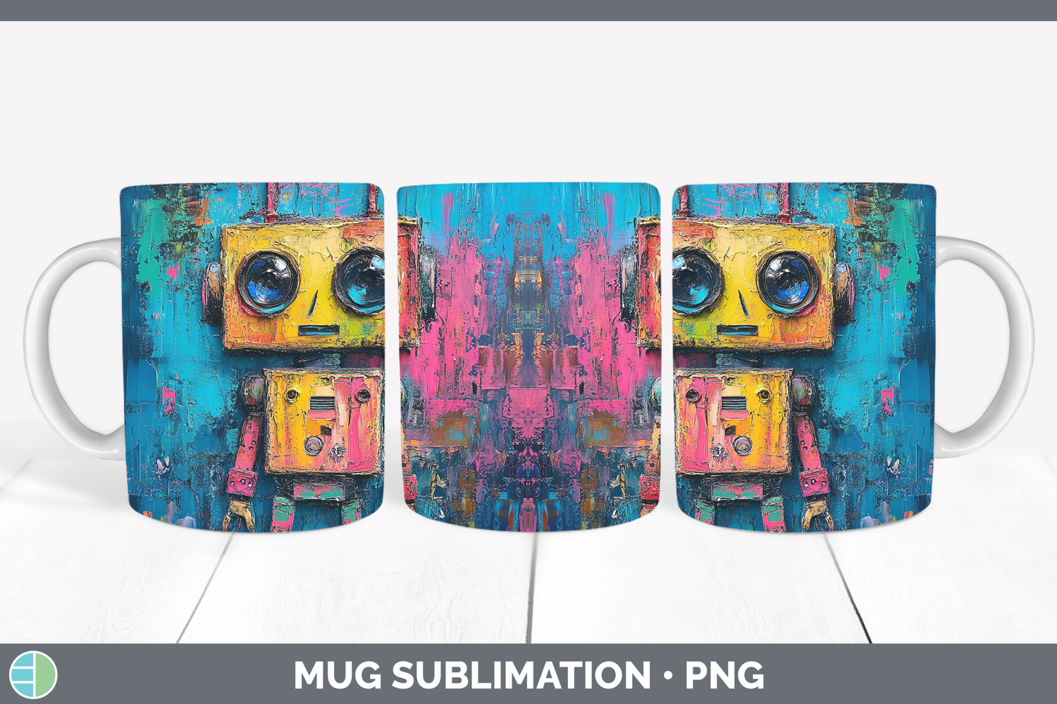 Kids 02 Thick Paint Robot Mug Wrap Sublimation Coffee Cup De