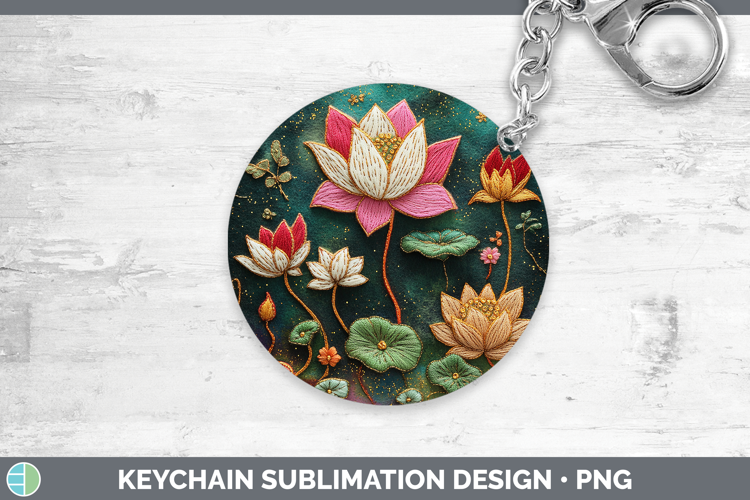 Flowers 01 Embroider Lotus Keychain Sublimation Keyring Desi