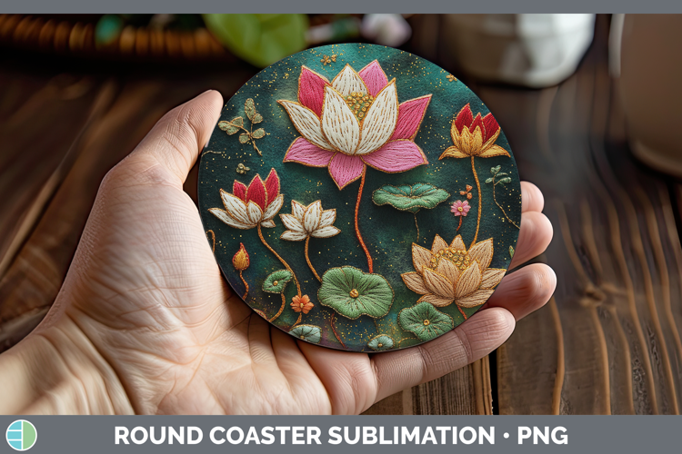 Similar Design Products to Flowers 01 Embroider Lotus Round Coaster Sublimation Coaster