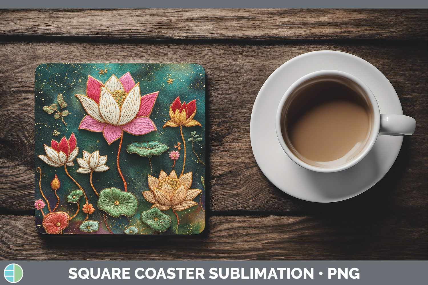 Flowers 01 Embroider Lotus Square Coaster Sublimation Coaste