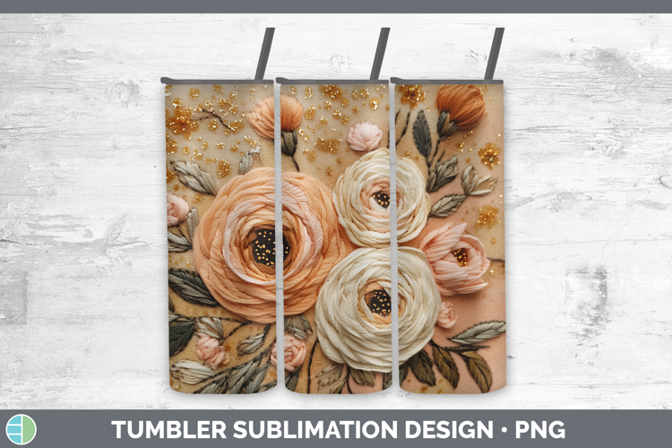 Flowers 01 Embroider Ranunculus Tumbler Sublimation 20 oz Sk