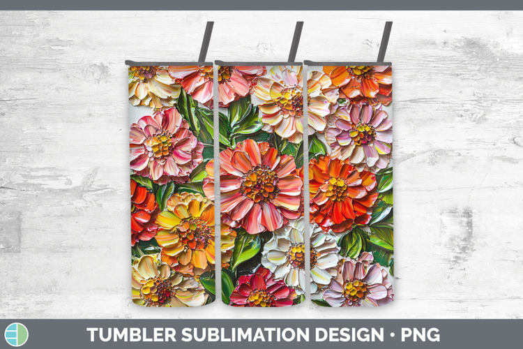 3D Flowers Zinnia Tumbler Sublimation 20 oz Skinny Tumbler D