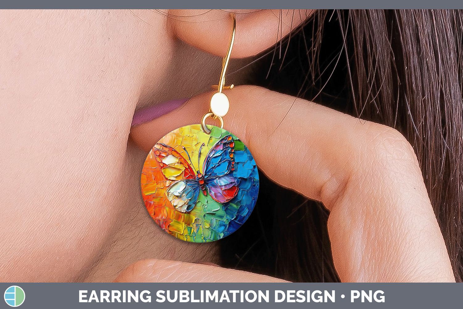 Animals Thick Paint Butterfly Round Earrings Sublimation Ear