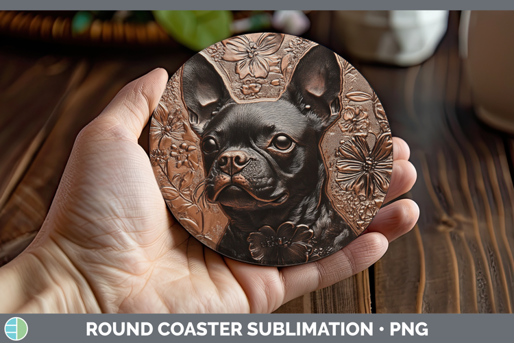 Dogs 02 Copper Relief Boston Terrier Round Coaster Sublimati