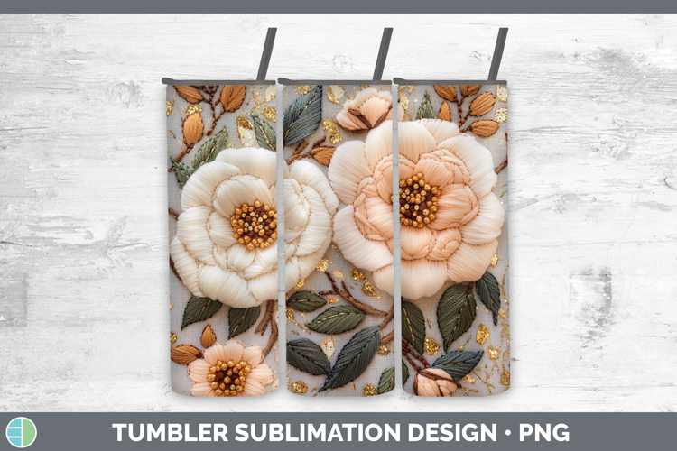Flowers 02 Embroider Camellia Tumbler Sublimation 20 oz Skin