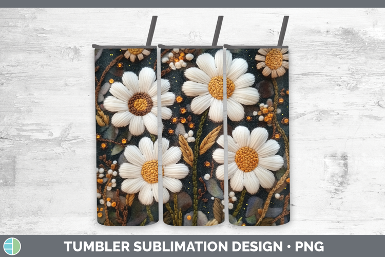 Flowers 02 Embroider Daisy Tumbler Sublimation 20 oz Skinny