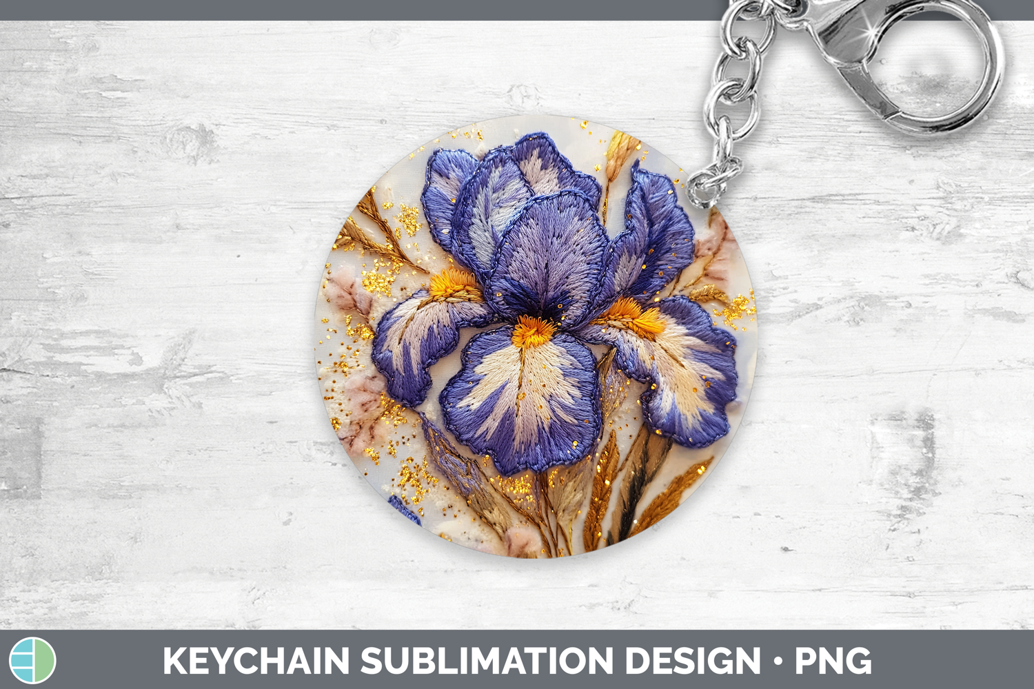 Flowers 02 Embroider Iris Keychain Sublimation Keyring Desig