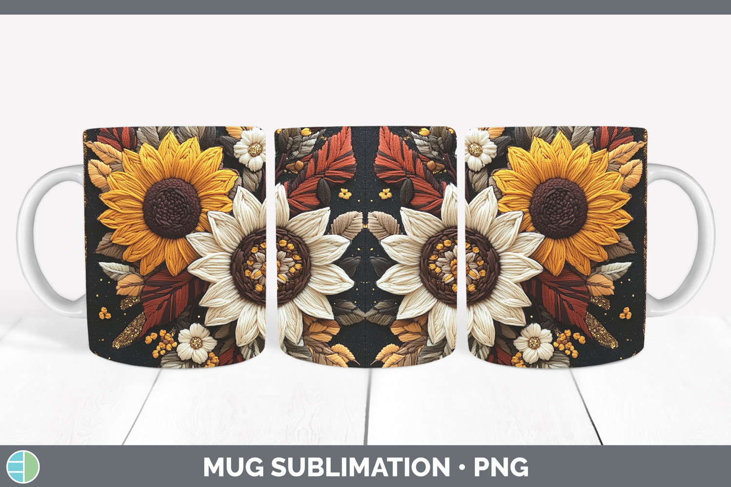Similar Design Products to Flowers 02 Embroider Sunflower Mug Wrap Sublimation Coffee C