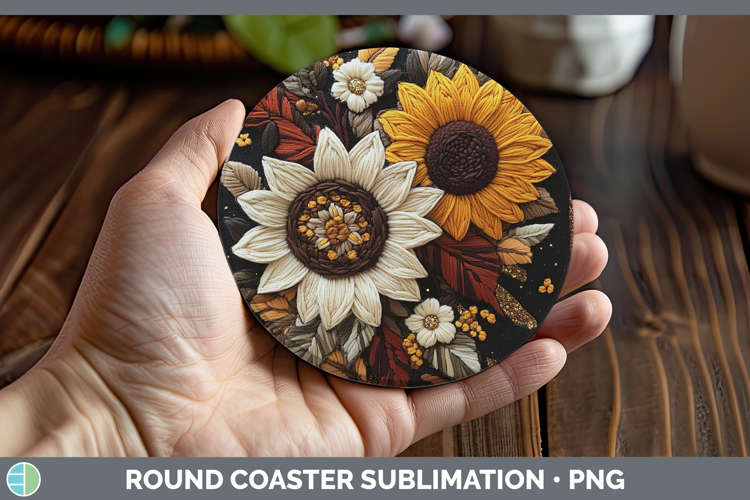 Similar Design Products to Flowers 02 Embroider Sunflower Round Coaster Sublimation Coa