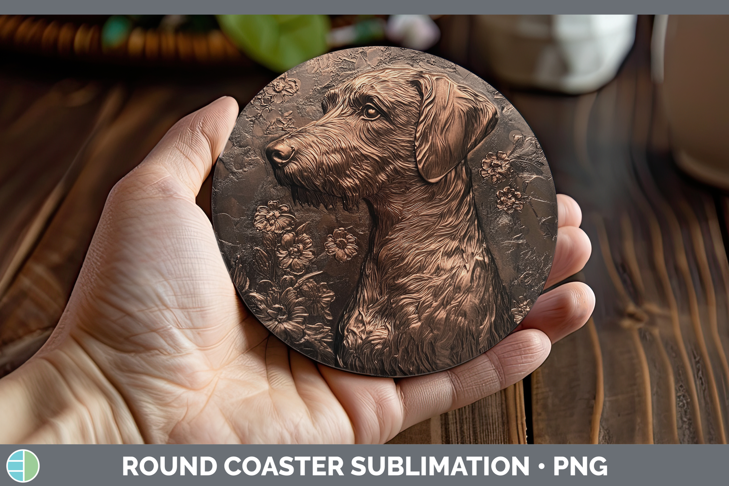 Dogs 03 Copper Relief Irish Wolfhound Round Coaster Sublima