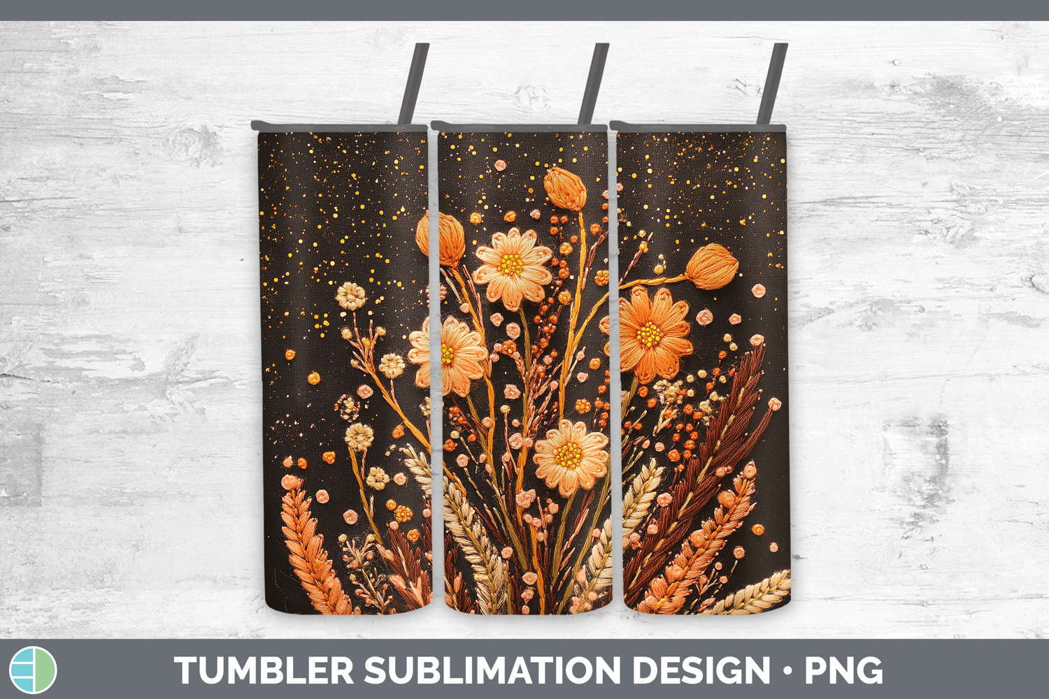 Similar Design Products to Flowers 03 Embroider Acacia Tumbler Sublimation 20 oz Skinny