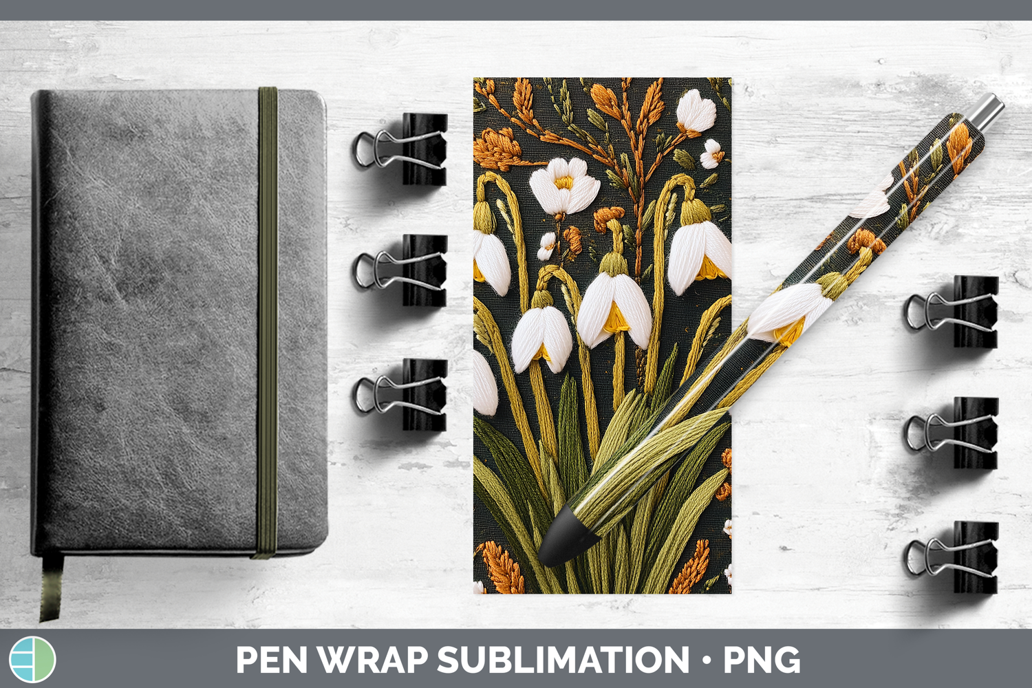 Flowers 03 Embroider Snowdrop Pen Wrap Sublimation Pen Desig