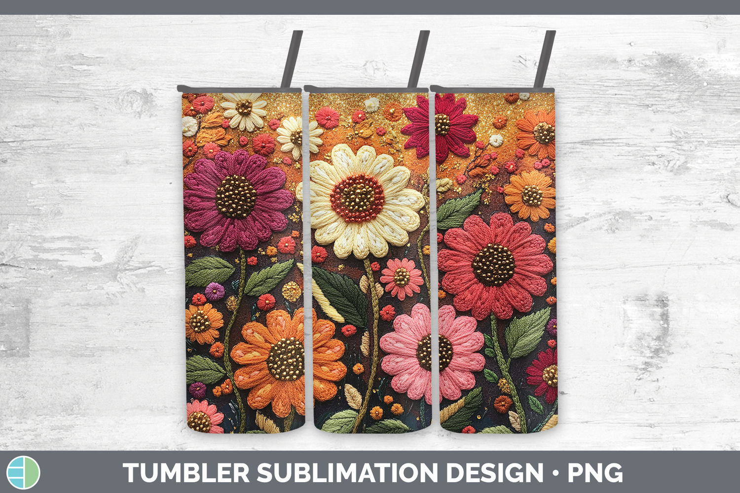 Similar Design Products to Flowers 03 Embroider Zinnia Tumbler Sublimation 20 oz Skinny
