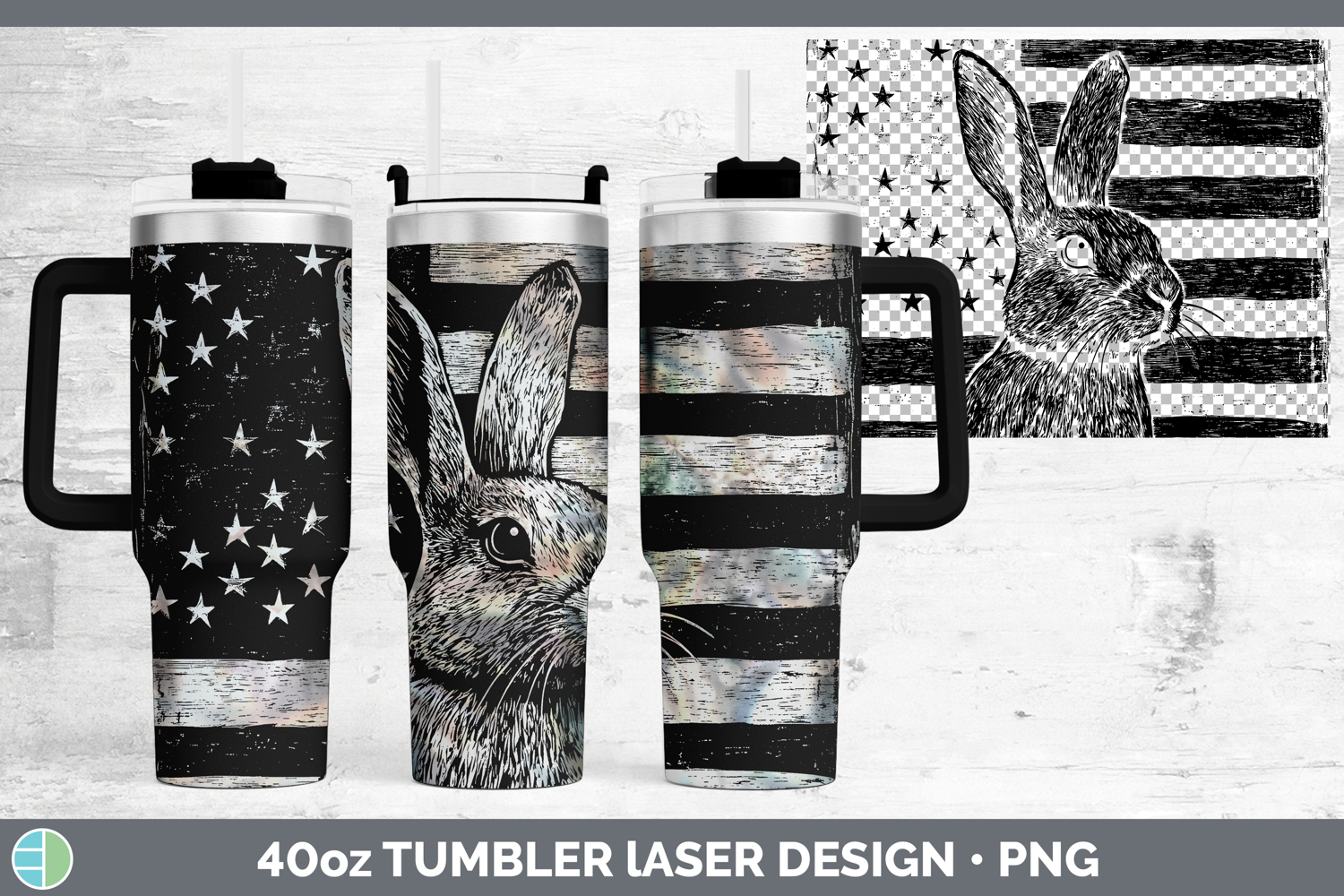 BS02 Patriotic Flag Bunny Laser 40oz Tumbler Sublimation Tum