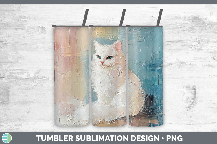 Similar Design Products to BS03 Thick Paint White Cat Tumbler Sublimation 20 oz Skinny