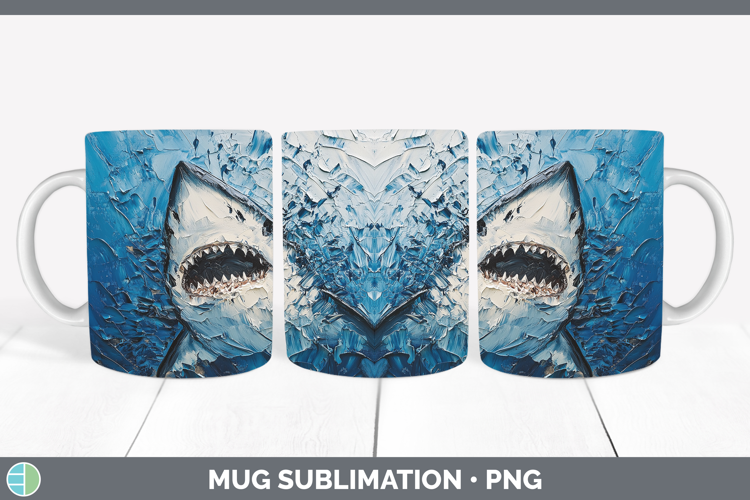 BS03 Thick Paint Shark Mug Wrap Sublimation Coffee Cup Desig