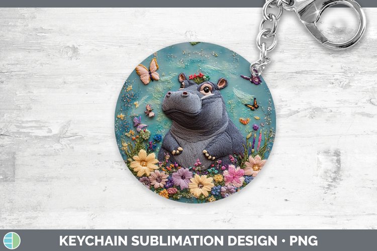 Safari Embroider Hippo Keychain Sublimation Keyring Designs
