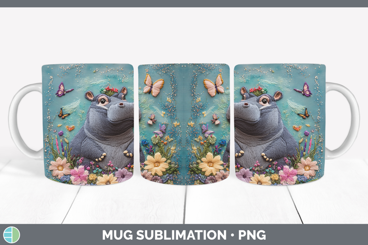 Safari Embroider Hippo Mug Wrap Sublimation Coffee Cup Desig