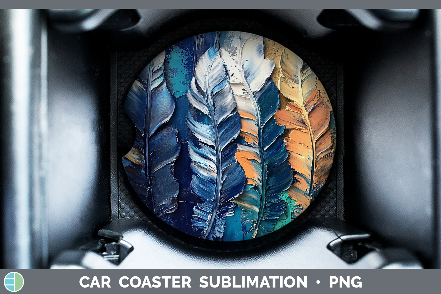 BS04 Thick Paint Boho Feathers Car Coaster Sublimation Desi