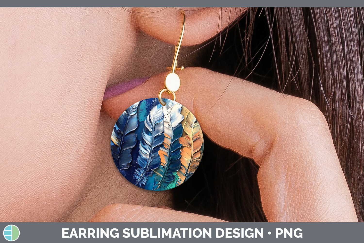 BS04 Thick Paint Boho Feathers Round Earrings Sublimation Ea