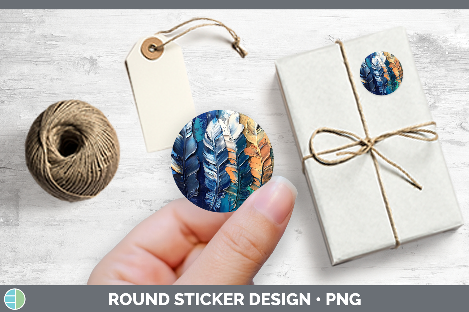 BS04 Thick Paint Boho Feathers Stickers | Round Labels Desig
